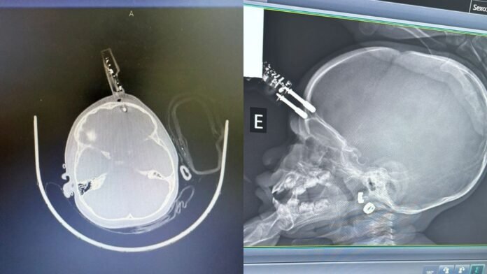 Após 36 horas em observação intensiva, sem sinais de sangramento intracraniano em tomografias de controle, a criança foi transferida para a enfermaria e recebeu antibióticos intravenosos por cinco dias para prevenir infecções — um dos maiores riscos em casos com corpo estranho penetrando o crânio.