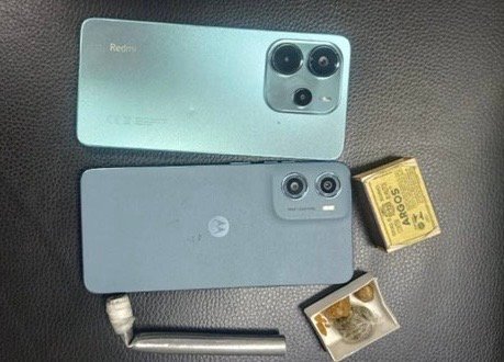 Durante a abordagem, os policiais realizaram busca pessoal no suspeito e encontraram dois aparelhos celulares, sendo um Redmi Note 14 e um Moto G5. Além disso, foram localizadas duas pedras de crack e uma porção de maconha.