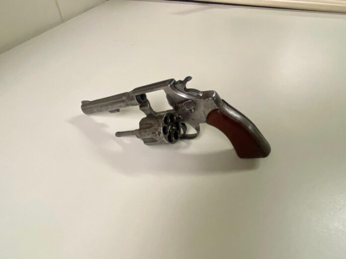 Ao chegar ao endereço indicado, os policiais foram recebidos pela mãe do suspeito, que chamou o filho para atendimento da ocorrência. No primeiro contato, ele admitiu possuir a arma e entregou voluntariamente um revólver calibre .32, que foi apreendido.