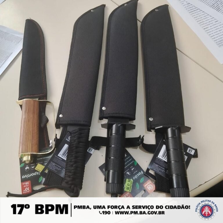 Em rondas pelo centro da cidade, os policiais avistaram o suspeito com um volume na cintura, então foi feita a busca pessoal, onde foram encontradas com o suspeito 4 facas esportivas. Questionado, ele alegou ter comprado, mas em razão do intenso nervosismo, a guarnição resolveu ir ao Lojão Central — loja identificada na etiqueta dos produtos.