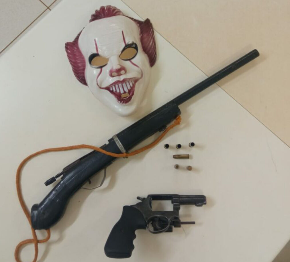Além das armas, uma máscara de palhaço que estaria sendo usada durante os disparos, também foi apreendida. Os autores e as armas aprendidas foram apresentados na Delegacia de Caetité.