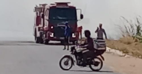 Incêndio em terreno urbano atrapalha trânsito na BR-122, em Guanambi.