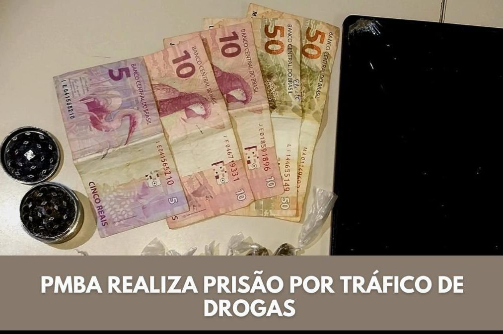 Na noite desta quarta-feira (1º), por volta das 18h, uma guarnição do 17º Batalhão de Polícia Militar (BPM), durante rondas no município de Candiba, realizou a prisão de um jovem de 18 anos suspeito de tráfico de drogas.