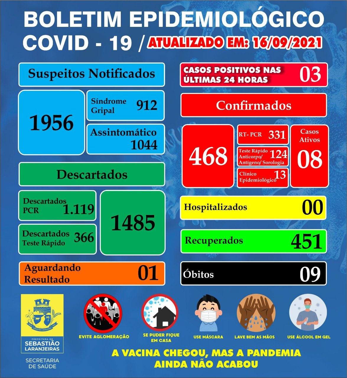Nesta quinta-feira (16/09) foi divulgado mais um boletim epidemiológico Covid-19, onde 03 casos foram confirmados nas últimas 24 horas.