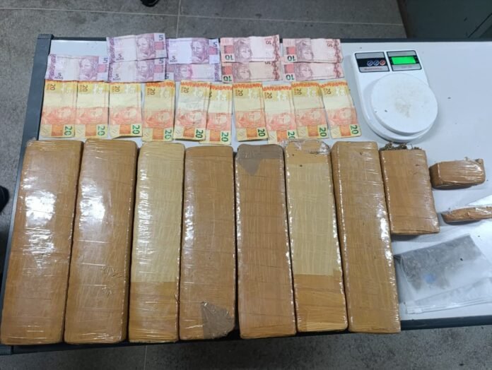 Ao todo, foram apreendidos aproximadamente 5,8 quilos de maconha, R$ 265 em dinheiro e uma balança de precisão, material que, segundo a polícia, pode ser utilizado para fracionamento e comercialização da droga.