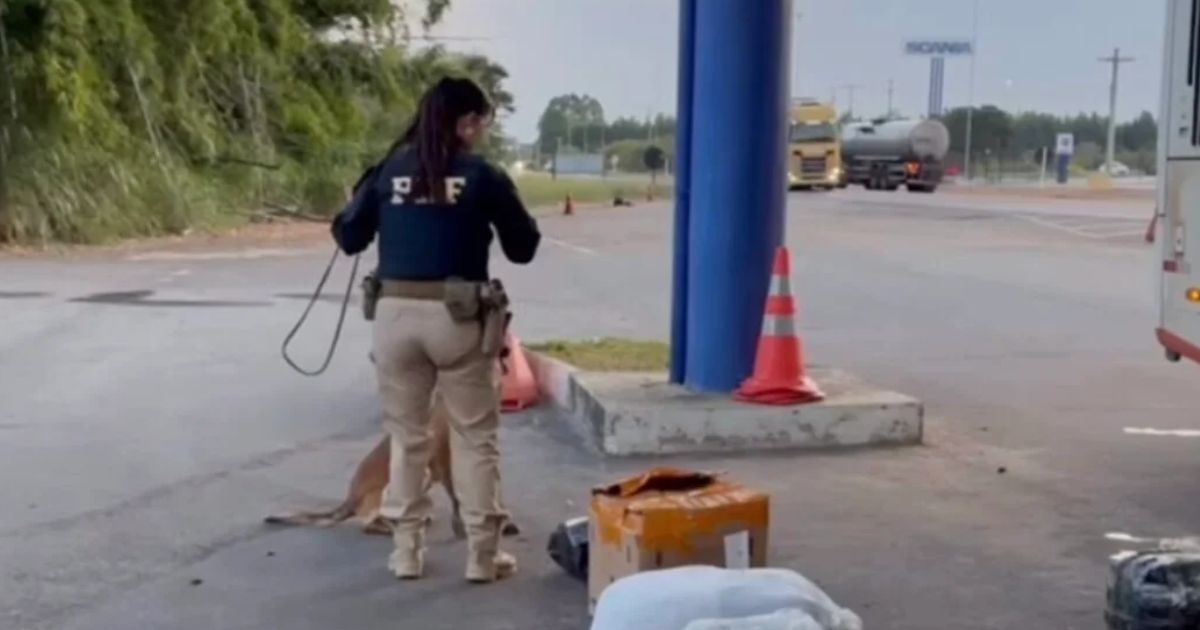 A ação ocorreu na última terça-feira (10), no km 830 da rodovia, durante fiscalização a um ônibus interestadual. Com o apoio dos cães farejadores do Núcleo de Operações com Cães (K9), os policiais localizaram uma encomenda suspeita no compartimento de bagagens.