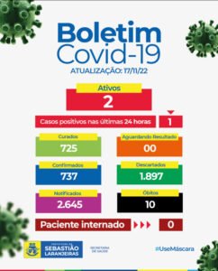 Nesta quinta-feira (17/11) foi divulgado mais um boletim epidemiológico Covid-19 pela secretaria municipal de saúde de Sebastião Laranjeiras , onde 02 casos positivos de covid-19, foram confirmados.
