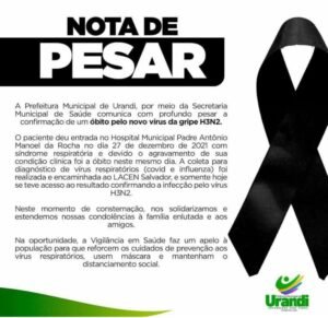 URANDI – O município de Urandi, no Sudoeste da Bahia, registrou o primeiro óbito por Influenza (H3N2). A informação foi confirmada na tarde desta segunda-feira (3).